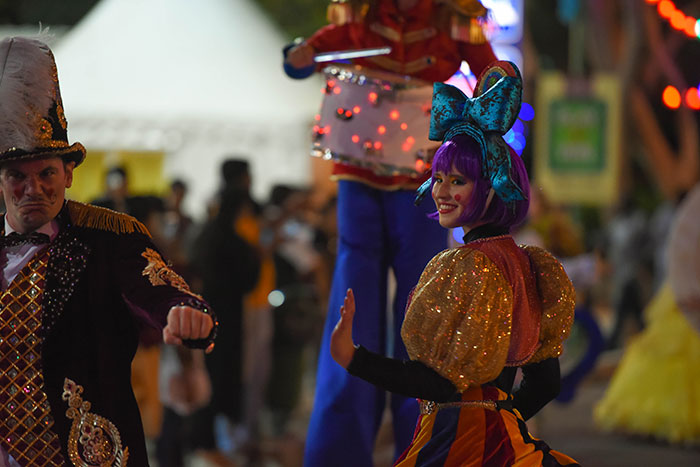 Una performance circense itinerante con sette personaggi, questa parata circense utilizza personaggi ambulanti per creare un vero e proprio carnevale itinerante. A guidare il Delight Circus Parade c'è un eccentrico presentatore che attira folle da lontano con la sua personalità eccentrica e un fantastico costume che non è completo senza il suo cappello a cilindro. Le paillettes dorate che si estendono sulla giacca viola del nostro presentatore corrispondono al suo gilet altrettanto appariscente che incanta gli spettatori.