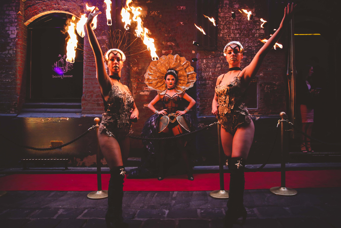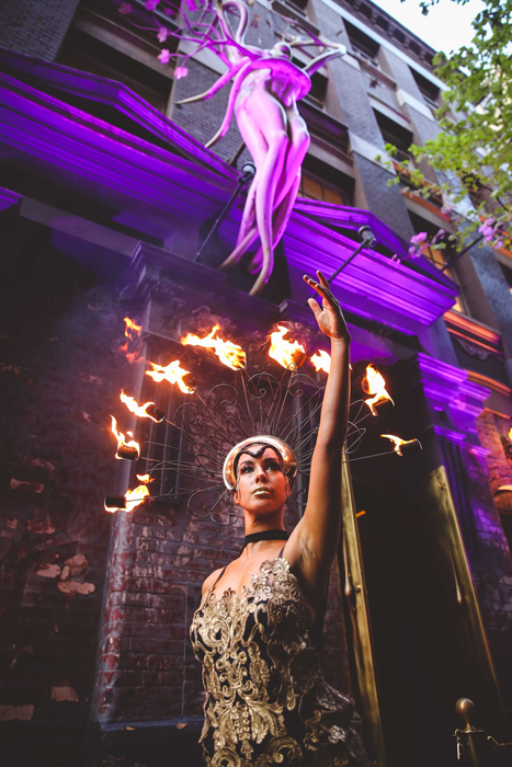 Le incredibili creazioni di costumi unici vanno di pari passo con un team di performer esperti che offriranno una serie di servizi di intrattenimento e di accoglienza, oltre ad avere diverse abilità addestrate come performance con il fuoco, trucchi circensi e altro ancora. I costumi su misura possono anche essere creati per essere indossati da qualsiasi performer in tutto il mondo.