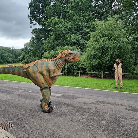 Con oltre 20 anni di esperienza nella recitazione e nei tour, il nostro personaggio in costume animale garantisce una performance professionale e divertente sui dinosauri.