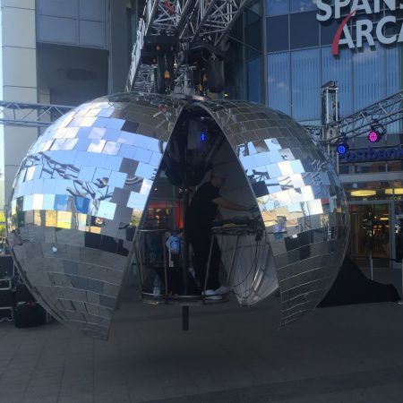 DJ In Una Gigantesca Palla Specchiante
