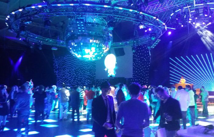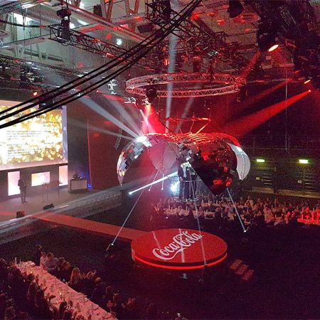 Sospeso in alto sopra la folla, il DJ con palla di lustrini scende verso gli ospiti senza che loro sappiano cosa aspettarsi. Il nostro DJ all'interno di una gigantesca palla di specchi non diventa visibile fino a quando la sfera scintillante si apre e rivela il nostro uomo all'interno dell'orbe. Se desideri che i tuoi ospiti festeggino con stile, allora questa è l'opzione perfetta per la musica dal vivo.