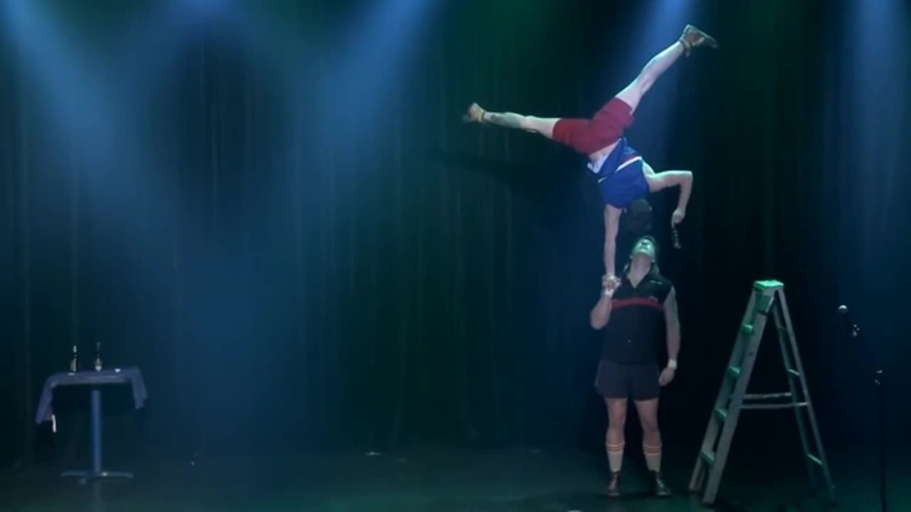 Questo duo che beve birra e sventola bandiere è l'incarnazione vivente di tutte le supposizioni australiane. Il loro brillante spettacolo a tema australiano combina comicità esilarante con acrobazie mano a mano di altissima qualità. Con le bevande in mano e sorrisi compiaciuti sul viso, questi artisti circensi faranno sembrare le più incredibili dimostrazioni di forza e destrezza le cose più facili del mondo. Non lasciarti ingannare dalla loro consegna goffa e improvvisata: la forza e l'abilità di questo duo acrobatico sono reali. Improntato all'imprevedibilità, al suspense e alla ridicolaggine in egual misura, questo spettacolo a tema australiano offrirà al tuo pubblico un'esperienza unica.