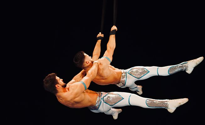 I loro versatili spettacoli acrobatici includono acrobazie di equilibrio a corpo liberi, duetti aerei, acrobazie soliste aeree e Ruota di Cyr, ideali per una varietà di formati di eventi.