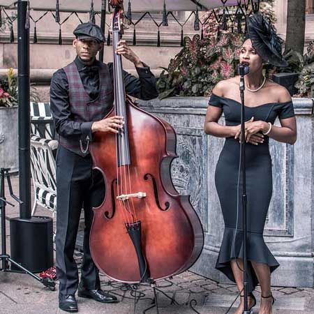 Offrendo una rara ed elegante combinazione di incantevoli voci femminili e i toni soul di un contrabbasso, il nostro fantastico duo di cover di NY offre un arrangiamento musicale che molti ospiti non avranno mai visto prima.