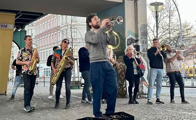 New Orleans incontra Berlino! Questa vivace banda di ottoni offre dell'energica musica da strada che risolleva l'umore e fa ballare la gente.