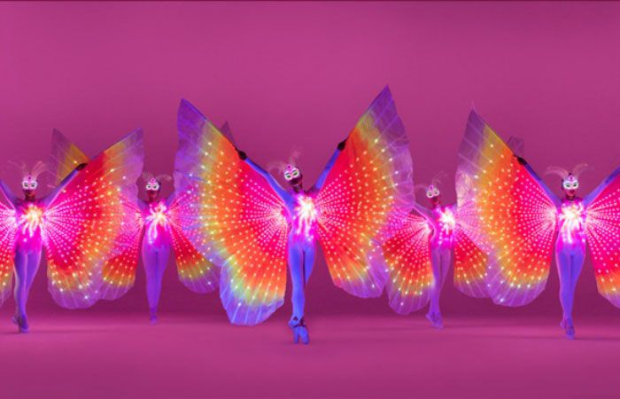 Anche se di solito si esibiscono come trio, queste Farfalle LED possono adattare la loro performance luminosa in modo che più ginnaste possano unirsi a loro sul palco. Come si può vedere nel video qui sopra, il loro spettacolo è diviso in tre parti durante le quali mostrano eleganza, raffinatezza e stile.