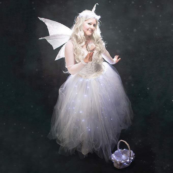 Luci a LED opzionali attaccate al costume rendono questa performance ideale sia per eventi diurni che serali, conferendo al personaggio un magico bagliore da fata