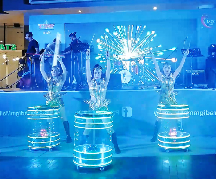 Lo spettacolo mozzafiato delle Female LED Water Drums è stato visto in una vasta gamma di eventi in Malaysia. Si adatta incredibilmente bene ad eventi futuristici o basati sulla tecnologia, funzioni aziendali, lanci di prodotti, cene di gala, occasioni speciali e molto altro ancora.