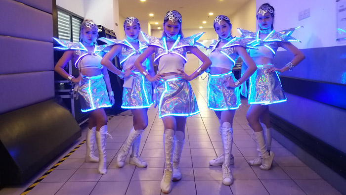 Le Female LED Water Drums in Malaysia hanno una gamma incredibile di costumi che possono essere personalizzati per adattarsi a un tipo di evento specifico. Alcuni di questi includono costumi eleganti dorati, futuristici, arti marziali e abiti LED di fantascienza.