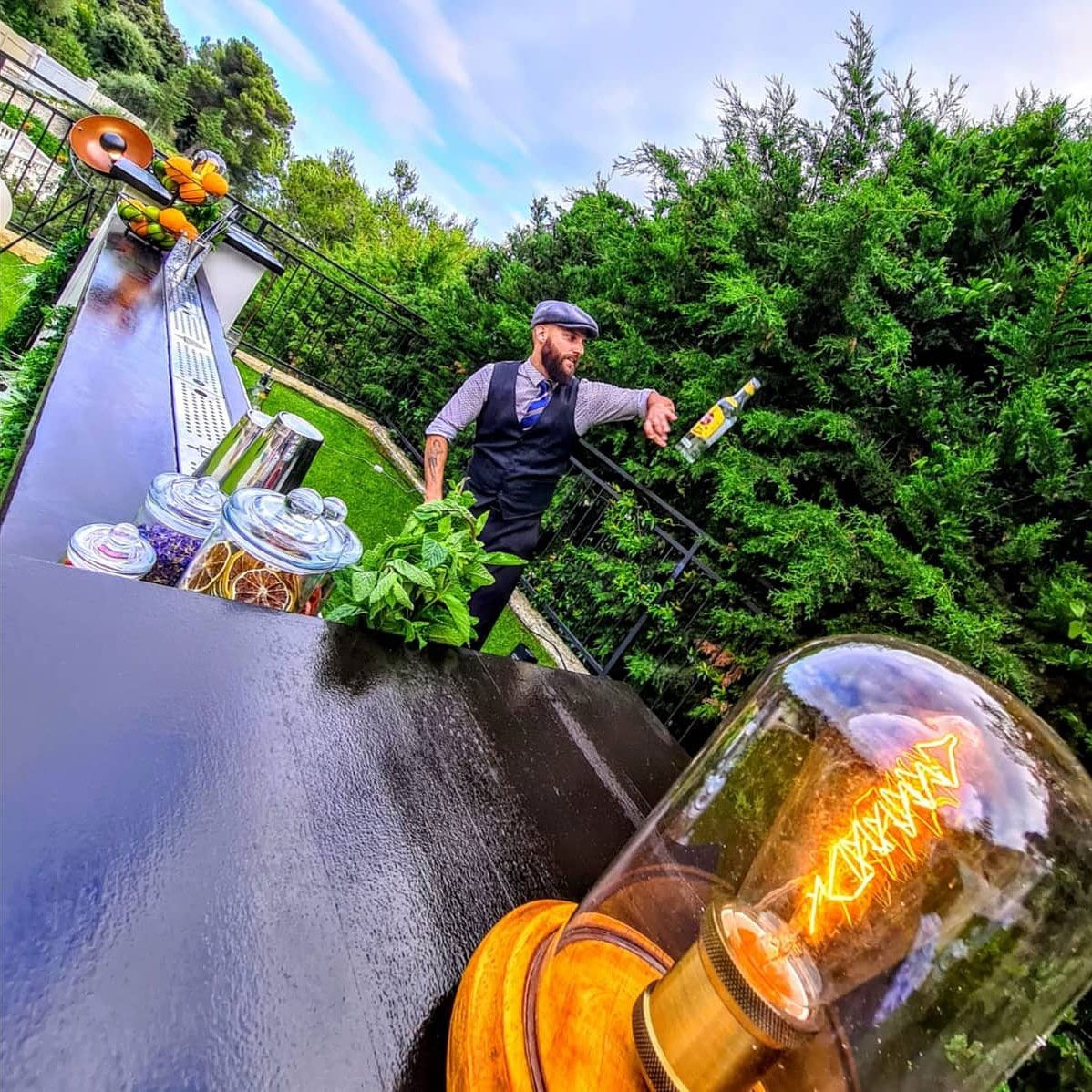 I nostri talentuosi barman professionisti porteranno un tocco di classe al tuo prossimo evento mescolando un vero e proprio uragano con i loro cocktail mozzafiato.