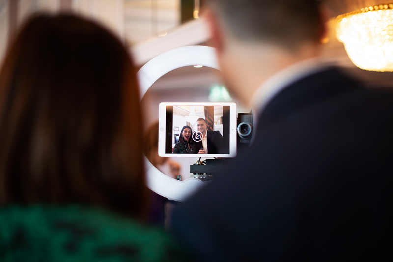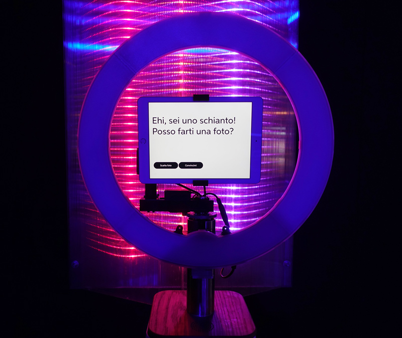Un photo booth interattivo come nessun altro, questo avanzato robot fotografico interattivo può intervistare i tuoi ospiti e registrare le loro risposte! Le stampe fotografiche che rilascia possono anche essere completamente personalizzate con il tuo logo, una data, nomi, ecc., così come i video e i GIF.