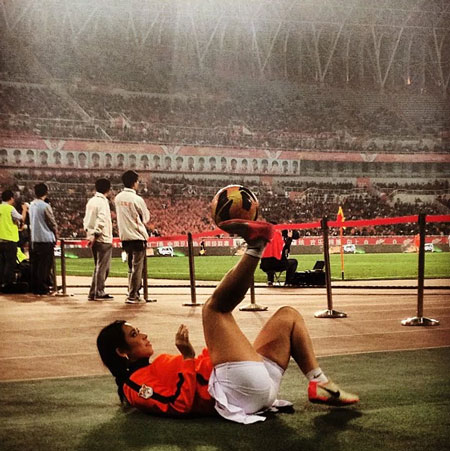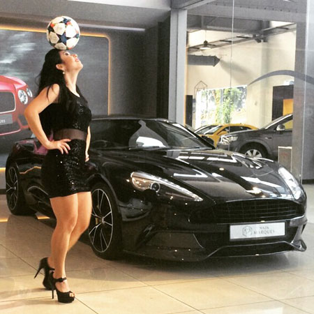 Oltre ad essere una sensazione del calcio, la nostra incredibile freestyler è anche una modella, combinando i due mondi del calcio e del modellismo per creare uno spettacolo eccezionale che è femminile e incredibilmente impressionante.