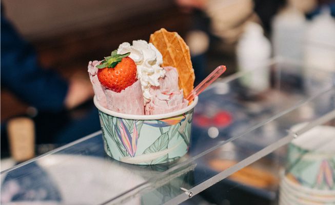 Questo team di catering può allestire presso la tua location e offrire opportunità di branding su bicchieri di gelato o presso lo stand con il tuo logo e messaggi.