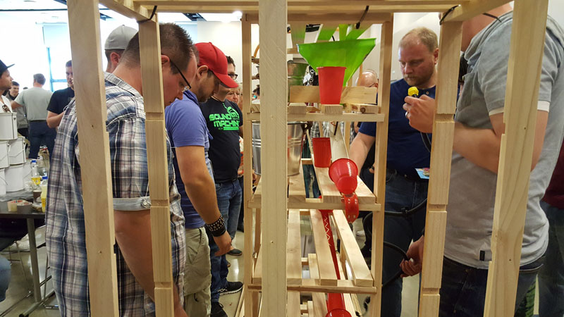 Sfida i tuoi colleghi di lavoro o dipendenti con questo stimolante gioco a catena di reazione, un'emozionante attività di teambuilding indoor che metterà alla prova le loro capacità di lavoro di squadra, gestione del tempo e risoluzione dei problemi.