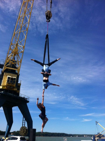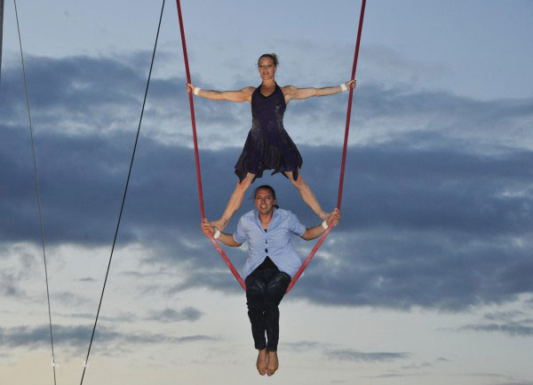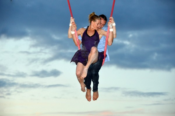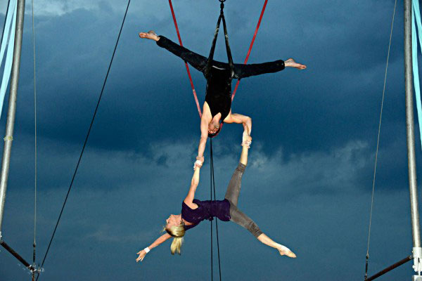Questa stupefacente coppia di acrobati aerei offre uno spettacolo teatrale, colorato e originale nello stile del nuovo circo. Entrambi esperti e professionisti, si esibiscono utilizzando un anello che ruota rapidamente o oscilla.