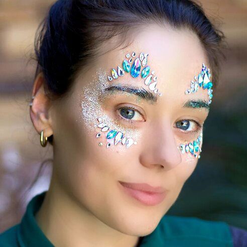 Spicca tra la folla in un festival o festa con questi sorprendenti truccatori di glitter che creano ghirigori colorati, fiori e arcobaleni.