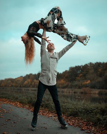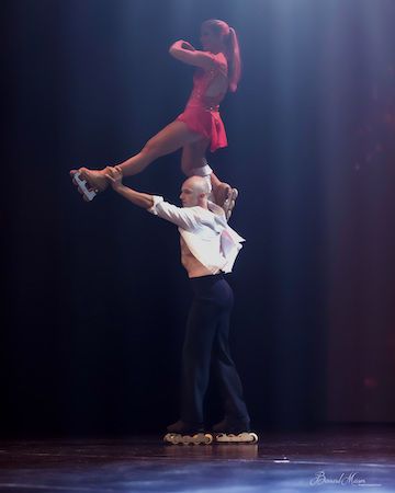Questi due artisti esperti sembrano sfidare la gravità con incredibili giri, sollevamenti e torsioni, il tutto eseguito sui pattini a rotelle.