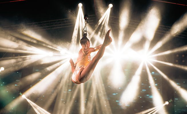 Perfetto per le celebrazioni alla ricerca di atti indimenticabili, la sua performance aerea con capelli sospesi combina bellezza, equilibrio e coraggiose abilità aeree.