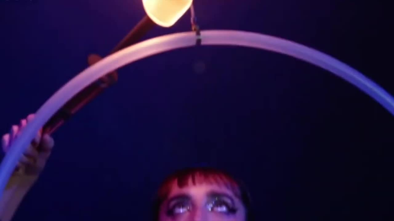Mescolando performance di danza e tecniche circensi come la giocoleria e la danza del fuoco, esegue set dinamici.