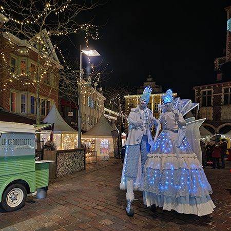 Con sede in Belgio, questo intrattenimento sui trampoli a tema invernale può elevare qualsiasi evento, catturando il pubblico con la sua performance interattiva e maestosa.