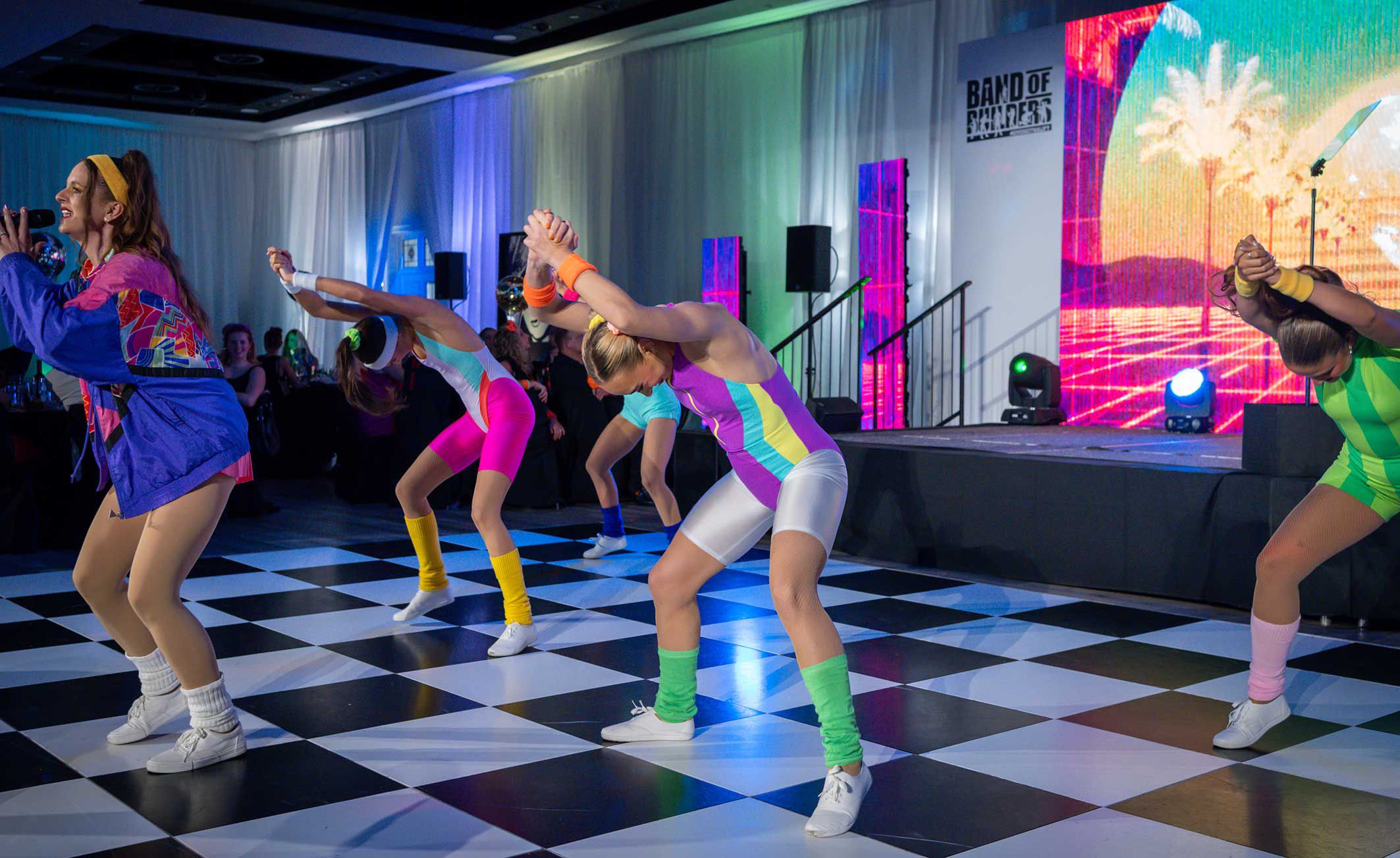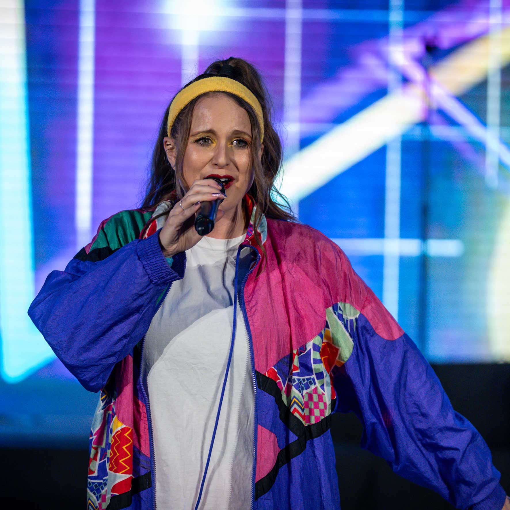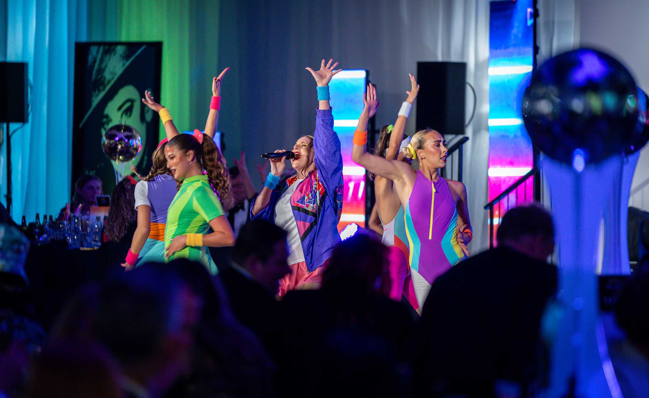 Per un'esperienza completamente coinvolgente degli anni '80, questo spettacolo può essere prenotato con contenuti a schermo LED a tema come un extra opzionale.