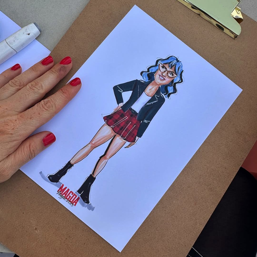 Offri ai tuoi ospiti un ricordo personale e lussuoso del tuo evento con la nostra incredibile illustratrice di moda mentre crea ritratti intricati disegnati a mano.