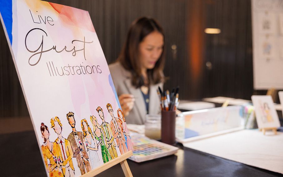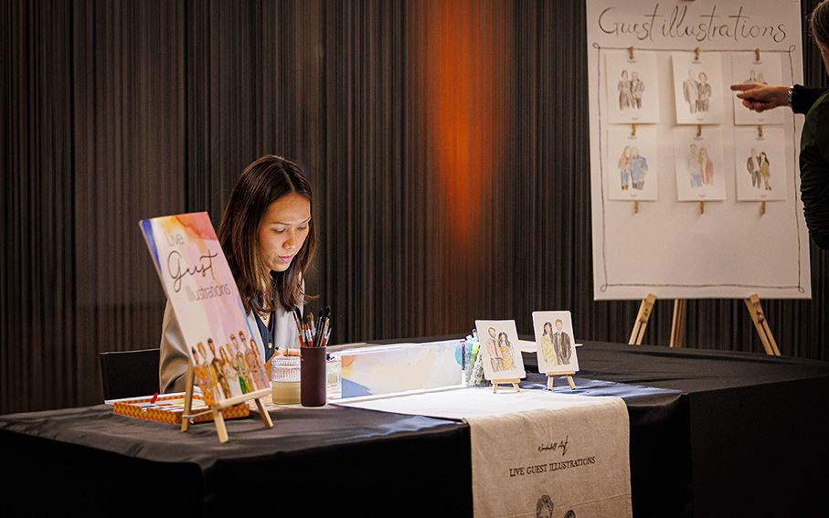 Aggiungi un tocco unico e interattivo alla tua celebrazione con le illustrazioni live dell'artista.