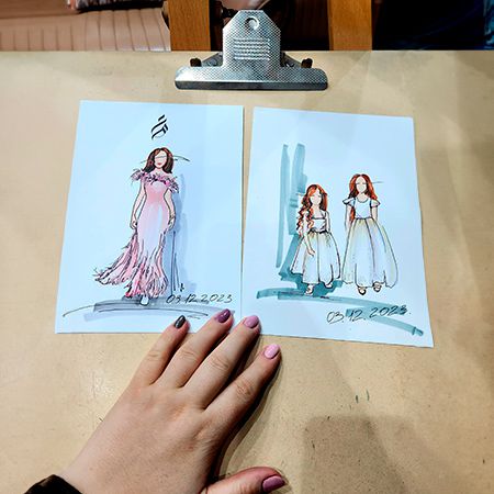 Con un forte impegno per la soddisfazione del cliente, la nostra artista realizza eccezionali illustrazioni di moda che diventano un ricordo prezioso per gli ospiti.