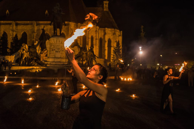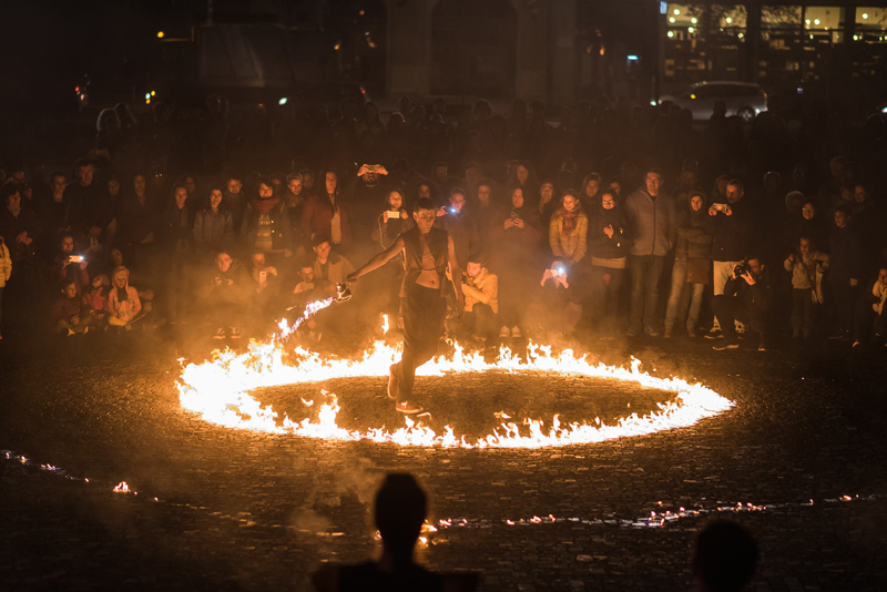 Questo stupefacente spettacolo di danza del fuoco inizia con una parata che catturerà immediatamente l'attenzione della folla. Questo spettacolare inizio si sviluppa in vari atti di fuoco eseguiti da artisti che padroneggiano diverse discipline di manipolazione del fuoco.