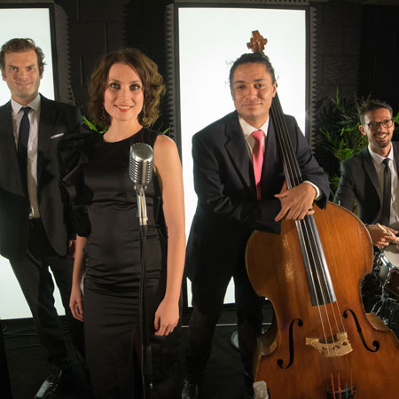 Con una vivace presenza sul palco, il nostro quartetto a tema anni '20 è guidato da una cantante donna di origini italiane dalla voce perfetta. Avendo scoperto il suo amore per il jazz e l'improvvisazione vocale fin da giovane, è una cantautrice e interprete esperta. Garantito per colpire la giusta nota e creare un'atmosfera di festa fantastica, la nostra talentuosa cantante jazz donna è supportata da musicisti professionisti in stile vintage che faranno ballare i tuoi ospiti fino a tarda notte.