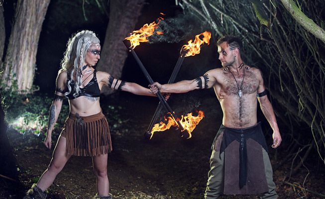 Sorprendi i tuoi ospiti con il nostro spettacolare duo di artisti del fuoco, uno show pieno d'azione con una serie di pericolose ed emozionanti acrobazie alimentate dal fuoco.