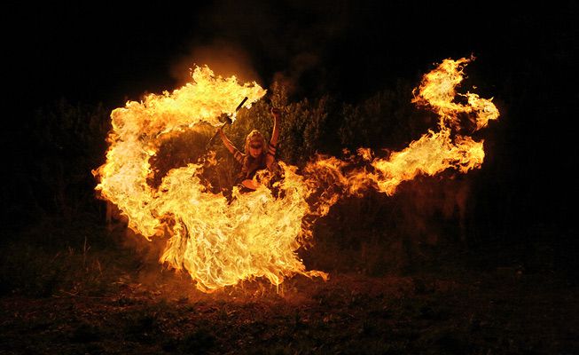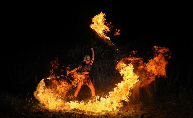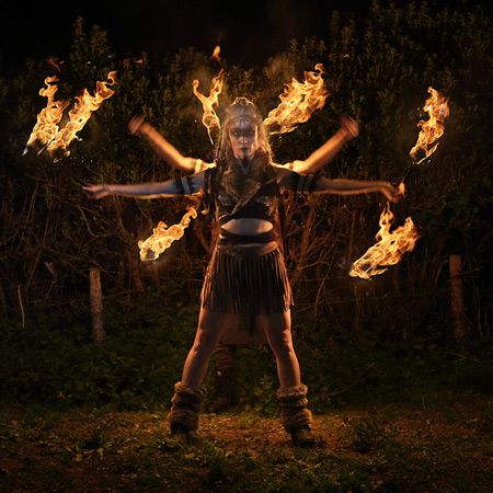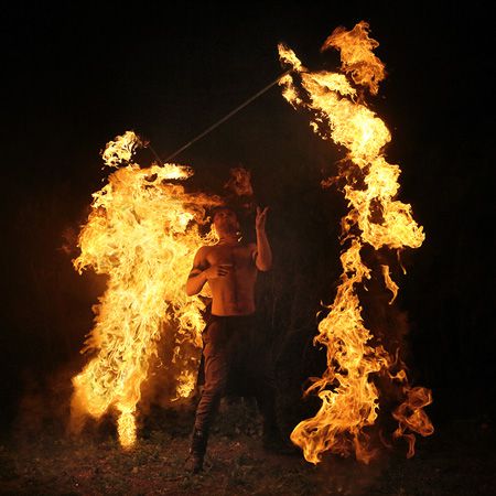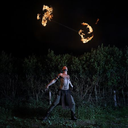 Questi artisti altamente qualificati hanno anni di esperienza professionale alle spalle e sono specializzati nel duo fire staff, nella danza del fuoco e nel fire spinning.