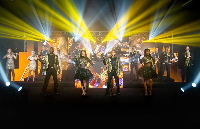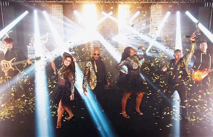 Il pacchetto base della band è un allestimento glamour che i tuoi ospiti adoreranno. I visual sul palco sono incredibilmente impressionanti, con uno spettacolo di luci che incanta il palco, una batteria completa di percussioni con congas, bonghi e una serie di extra, una batteria rialzata e coreografie di danza. Gli extra opzionali possono portare livelli di impatto completamente nuovi a questa band, con la possibilità di raddoppiare le dimensioni dell'impianto di illuminazione, raddoppiare le dimensioni del PA per più di 500 ospiti e aggiungere un DJ professionista per mantenere vivo il party.