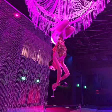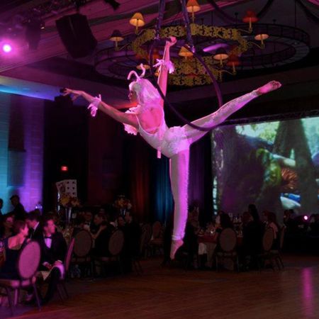 Uno spettacolo memorabile e accattivante che sicuramente sarà il punto forte del tuo evento. Questa acrobata affascinante è altamente qualificata e il suo lampadario aereo è un'apparecchiatura che raramente si vede agli eventi.