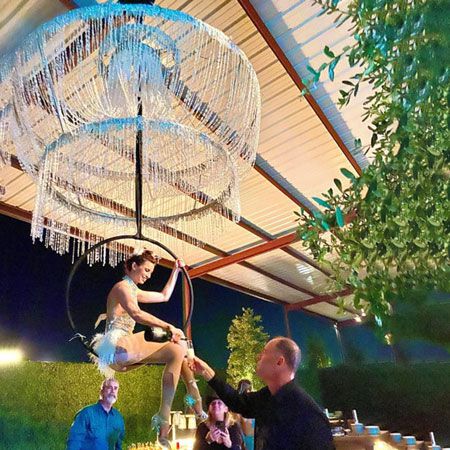 Desideri includere un elemento interattivo? Scegli di aggiungere il servizio di bar aereo da sotto questa struttura abbagliante. I tuoi ospiti adoreranno essere serviti con le loro bevande preferite dall'alto, dalla nostra spettacolare ballerina aerea. Questa è un'opportunità fotografica fantastica per gli ospiti e un'esperienza memorabile che sicuramente sarà argomento di conversazione per anni a venire.