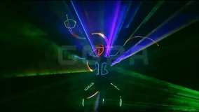 Spettacolo sbalorditivo che combina laser multicolore 3D e danza