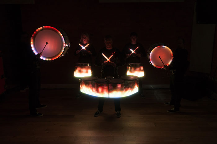 I batteristi LED assolutamente incredibili fanno parte di un ensemble di batteristi professionisti e altamente esperti. Lavorano molto a stretto contatto con i clienti, creano spettacoli completamente personalizzati e hanno una lunga lista di clienti di alto profilo come NFL, Sky Sports, Rugby World Cup 2015, Classic FM, Honda, Shell, Firefox, Eurostar, Wells Cathedral School, BNY, Mellon e molti altri. I loro ritmi contagiosi sono stati ascoltati alla Tate Modern, Regent Street, Trafalgar Square e Wembley.