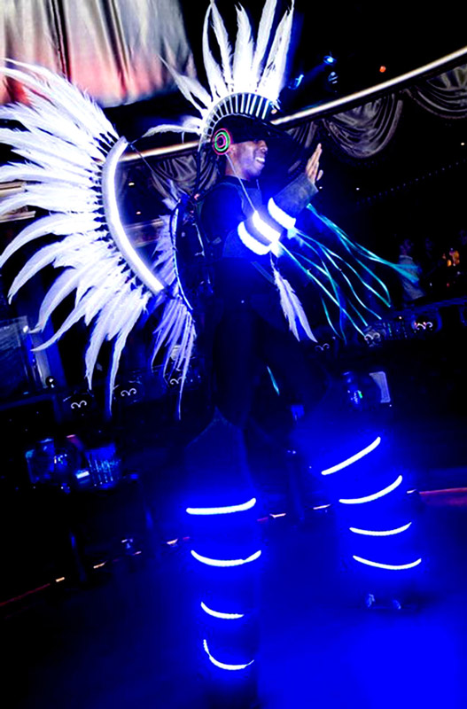 Il nostro spettacolo LED Mohawk all'avanguardia offrirà il meglio dell'intrattenimento futuristico e dell'intrattenimento LED. Il nostro spettacolo LED su trampoli si basa sui suggestivi costumi da battaglia della danza Pow Wow dei nativi americani ed è dedicato a portare il tipo giusto di vibrazioni che il tuo vivace dance floor amerà. Dotato di un'energia immensa, gli ospiti adoreranno il nostro trampoliere mentre si esibisce con sfavillanti luci lampeggianti LED che ipnotizzeranno e affascineranno per tutto il giorno, un'opzione fantastica per il tuo prossimo evento.
