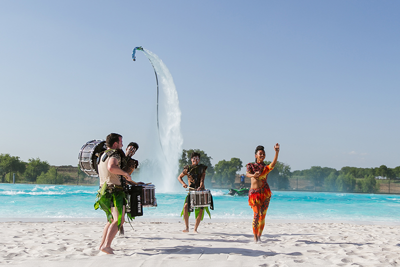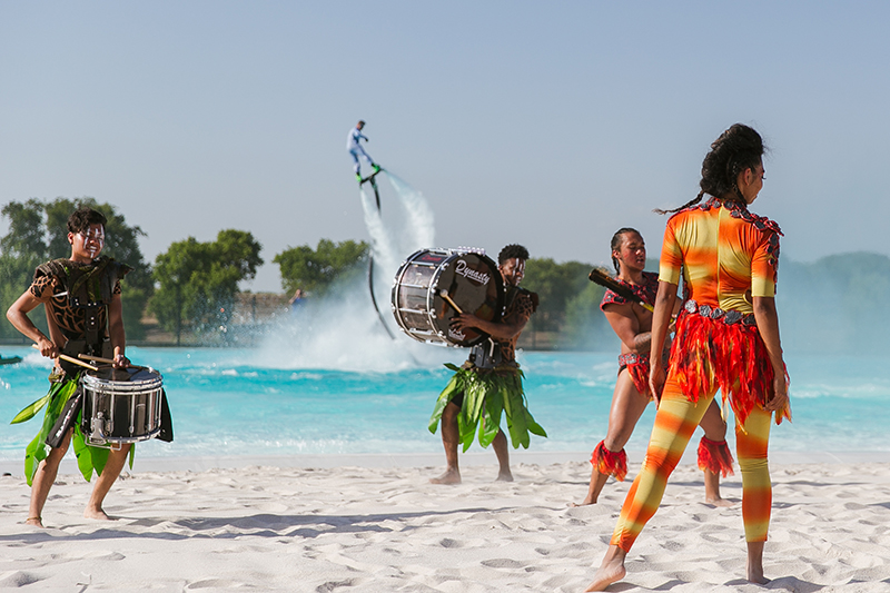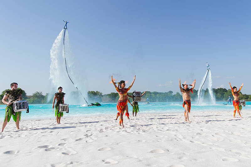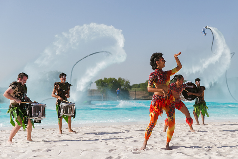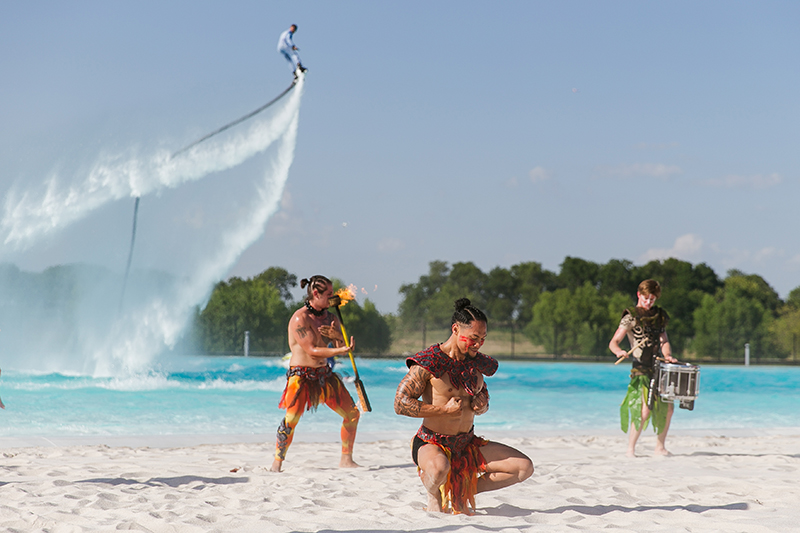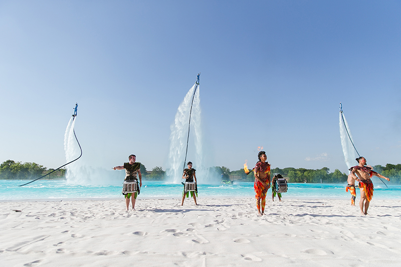 Combinando flyboards, jet ski, giocoleria del fuoco e tamburi, è uno spettacolo unico nel suo genere in tutto il mondo.