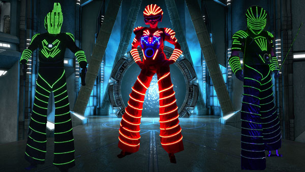 Il nostro personaggio robot futuristico ha bisogno di un'altezza del soffitto di 4-6 metri per poter eseguire le fontane di scintille. Contatta oggi i nostri specialisti dell'intrattenimento per saperne di più.