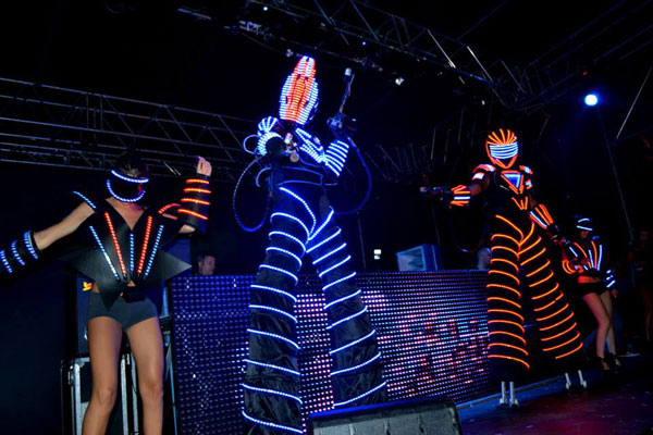 Il nostro brillante robot itinerante sicuramente porterà un effetto wow istantaneo al tuo evento mentre offre uno spettacolo luminoso ad alta energia che creerà ricordi duraturi e un'atmosfera piena di adrenalina grazie alla sua emozionante performance che include abbondanti effetti pirotecnici e speciali.