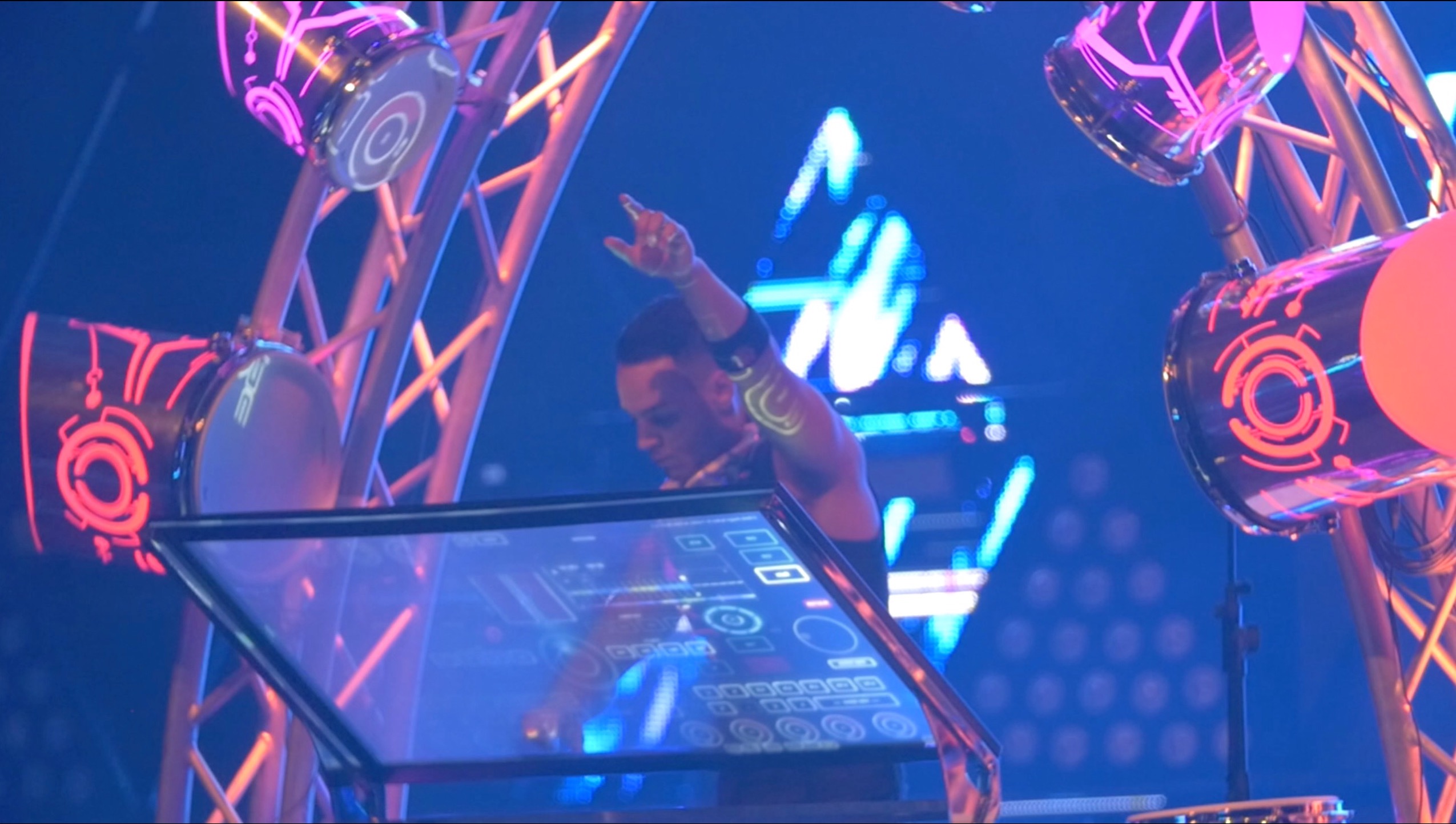 La Drum Machine si lancia come un fenomeno musicale tecnologico senza precedenti. Utilizzando uno schermo olografico trasparente da 55'', accompagnato da 13 tamburi e piatti luminosi, questa macchina di design all'avanguardia è stata costruita per far ballare le piste da ballo di tutto il mondo.