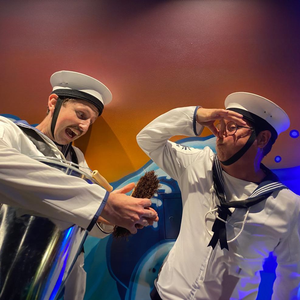 Questo duo dinamico si aggira per il locale, eseguendo sketch divertenti a tema marinaresco e battute spontanee, creando un'esperienza coinvolgente e immersiva.