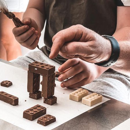 I nostri workshop di costruzione di mattoncini di cioccolato incoraggiano il lavoro di squadra e la creatività e sono adatti a tutte le età, dai bambini agli adulti; perfetti per tutta la famiglia!