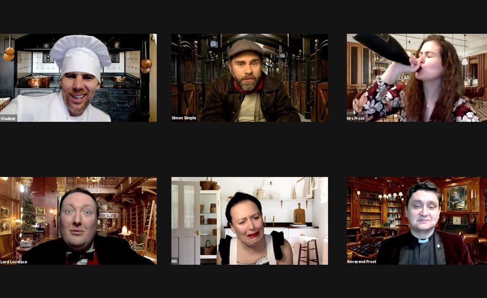 Gli ospiti accedono al link all'ora di inizio e si tengono in una sala d'attesa fino all'arrivo di tutti i partecipanti, a quel punto entrano nella sala principale tutti insieme. Una volta nella sala principale, la performance inizia con l'introduzione dei primi personaggi e viene fatto un discorso di benvenuto per impostare la scena e fornire il contesto. Gli attori sono sotto i riflettori all'interno della piattaforma Zoom per garantire che siano centrali per gli spettatori; gli ospiti sono in muto in modo da poter guardare la scena.