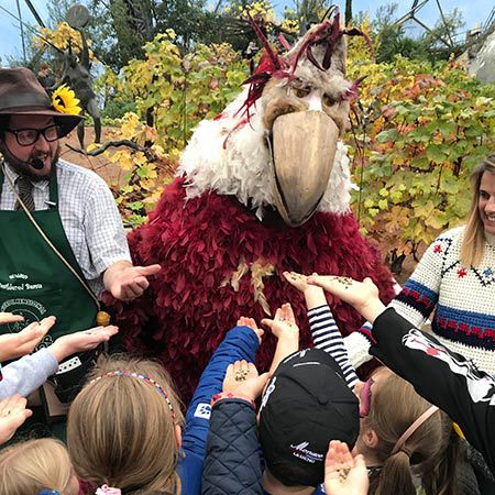 Questo atto interattivo di teatro di strada ha un effetto indimenticabile; un'esperienza spesso descritta come "incantevole". L'uccello spiritoso e adorabile incanta il pubblico di tutte le età e l'illusione unica che l'atto crea. Uno spettacolo di teatro di strada totalmente commovente e magico.