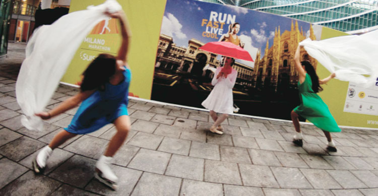 Esibendosi sui pattini in linea, i nostri artisti hanno presentato la loro produzione unica in paesaggi urbani che catturano immediatamente l'attenzione di ogni ospite e osservatore.