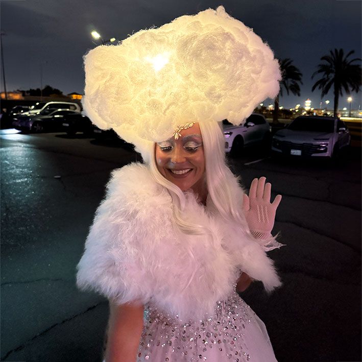 Costumi mozzafiato ispirati alle nuvole includono luci a LED, rendendo questo spettacolo itinerante perfetto per eventi diurni e notturni.
