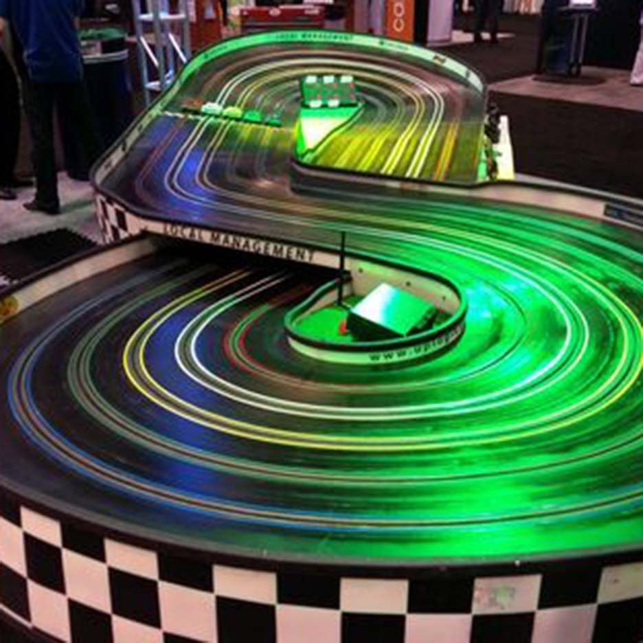 Questa pista indipendente può essere disponibile in diversi modelli e consente a due o sei vetture di correre contemporaneamente su corsie doppie. Gli ospiti controllano la velocità delle loro auto con un controller portatile. L'installazione include un built-in lap controller e consente incroci di corsia per un'esperienza di corsa emozionante.