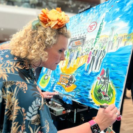 Un'esperta nella creazione di opere d'arte dal vivo, è anche famosa per la produzione di arte collaborativa, in quanto permette agli ospiti degli eventi di lasciare la propria impronta sui suoi dipinti. Questo crea una dinamica divertente per tutti e rende gli eventi più coinvolgenti e interattivi.